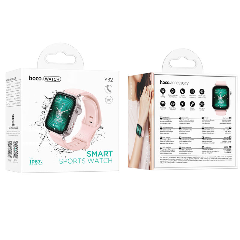 HOCO Y32 SMART WATCH | BLUETOOTH CALLING | PINK (IP67 WATERPROOF)