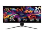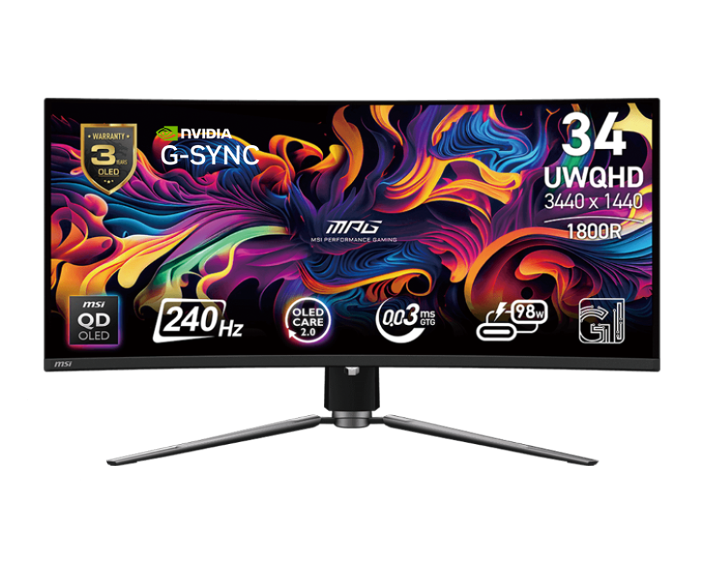 MSI MPG 341CQPX QD-OLED (34″ 3.4K UQHD , 1800R Curved, QD-OLED, 240Hz , 0.03ms, HDR, USB-C, Height Adjustment, G-Sync Compatible, Eye Care)